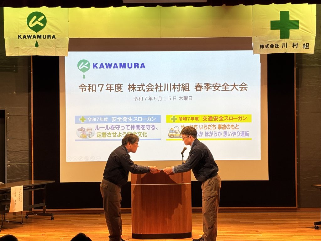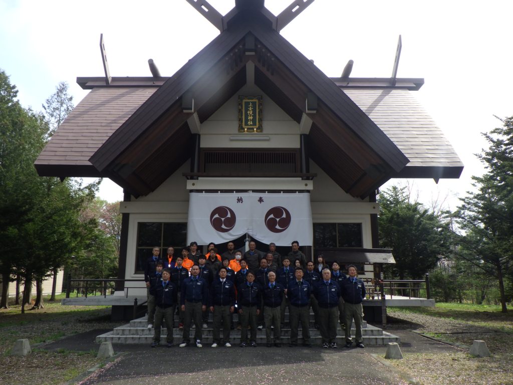 2025年5月15日(木)、川村組では、工事現場の無事故・無災害を祈念するため、上士幌神社にて「安全祈願祭」を、そして上士幌町生涯学習センター「わっか」視聴覚ホールにて「春季安全大会」を実施しました。