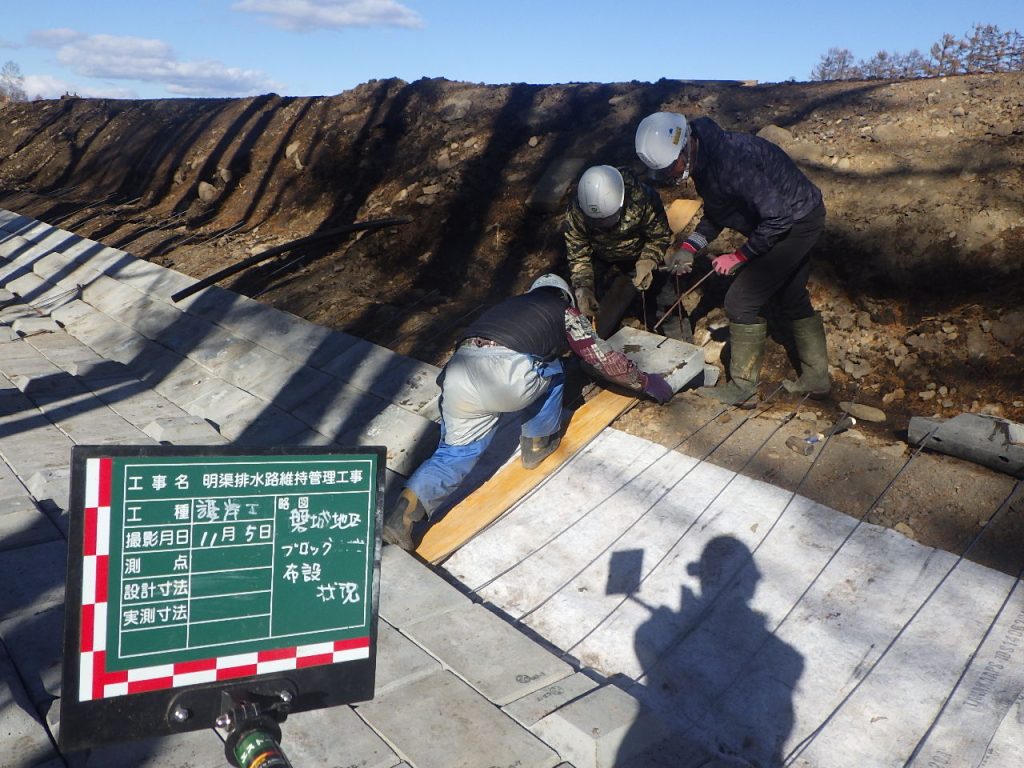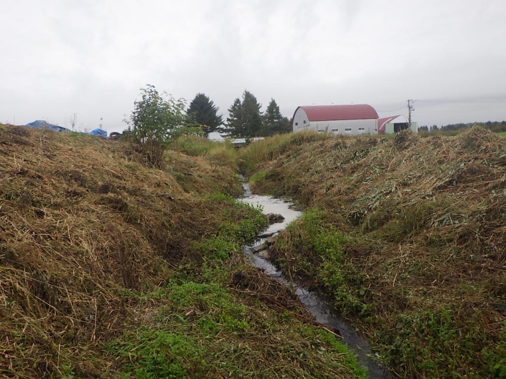 本工事は上士幌町内に点在する大雨により洗堀や土砂の堆積などの被害を受けた明渠排水路(5カ所)を再整備し、その効用を回復することを目的とした工事です。